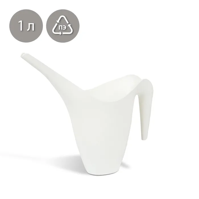 Лейка с длинным носиком, 1 л, без рассеивателя, белая, Greengo