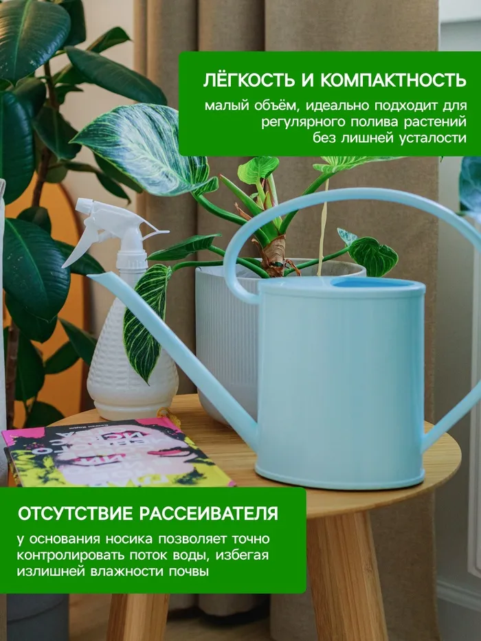 - Лёгкость и компактность — малый объём, идеально подходит для регулярного полива растений без лишней усталости.