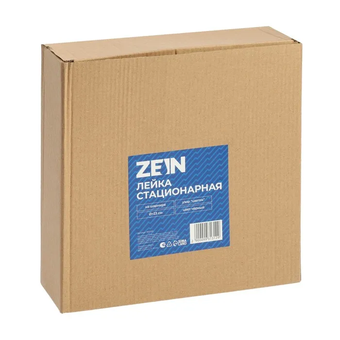 Лейка стационарная ZEIN Z3555 диаметром 25 см выполнена в стильном черном цвете и украшена узором "цветок", что придает ей элегантный и современный вид.