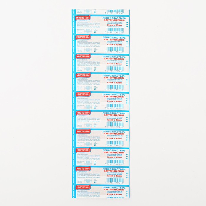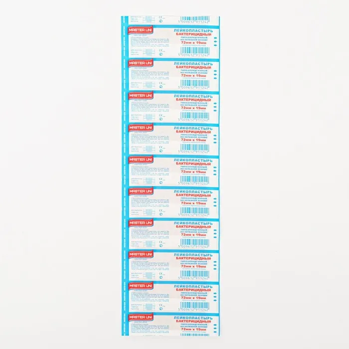 Лейкопластырь "Мастер Юни", бактерицидный, нетканая основа, 72х19 мм 10 шт. — Характеристики