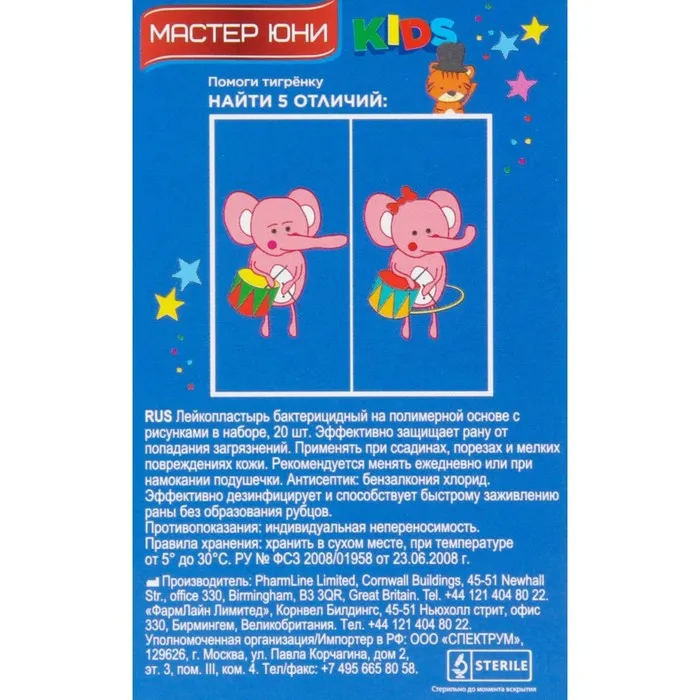 Лейкопластырь Master Uni Kids на полимерной основе с рисунками 20 шт — Характеристики