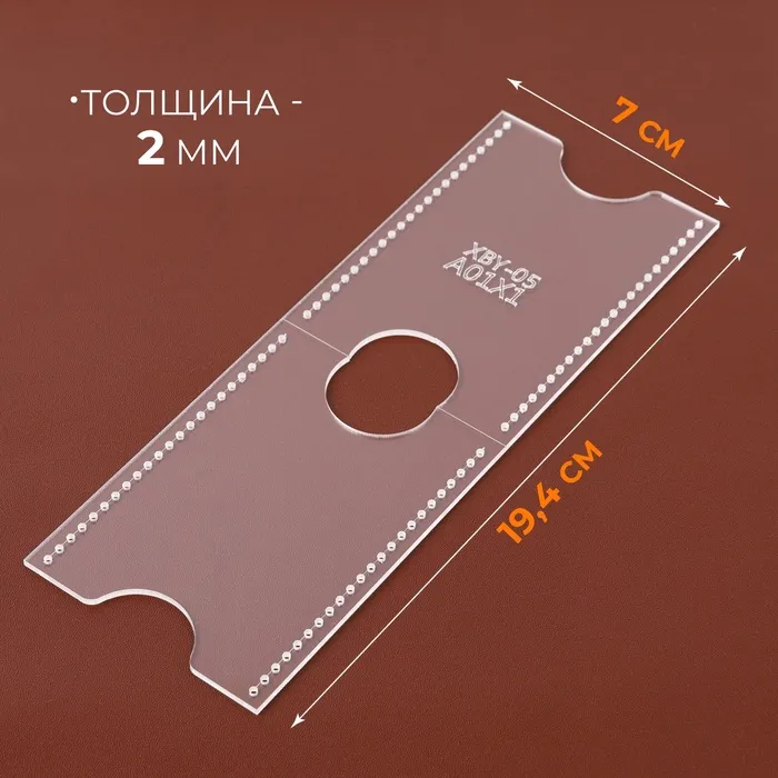 Лекало выполнено из высококачественного акрила толщиной 2 мм, что обеспечивает его прочность и долговечность. Компактные размеры (19 × 9 × 6 см) делают его удобным для работы с различными материалами, а также для хранения и транспортировки. С его помощью вы сможете легко и быстро создавать картхолдеры идеальной формы.