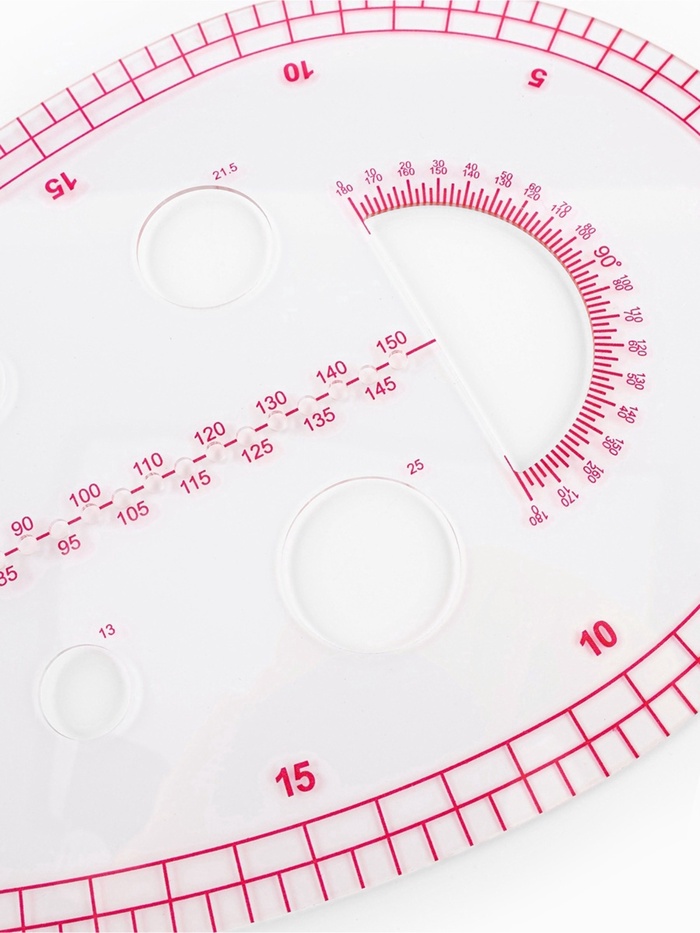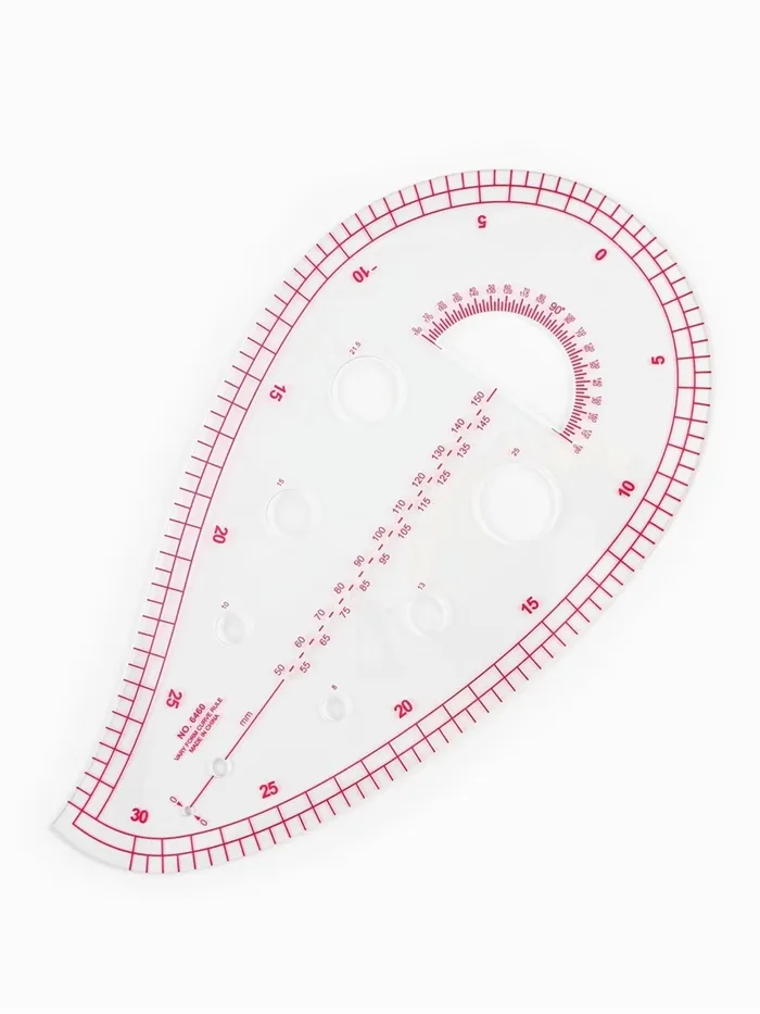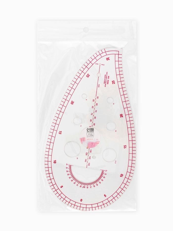 Инструмент для точных лекал и аккуратного кроя. Метрическое портновское лекало «Капля» — незаменимый помощник при построении выкроек, особенно в работе с изогнутыми участками одежды. Форма «Капля» специально разработана для моделирования пройм, горловин и других плавных контуров. Круглая сторона станет отличным помощником для построения линий горловины, проймы, карманов, окружности под разметку пуговиц разного размера