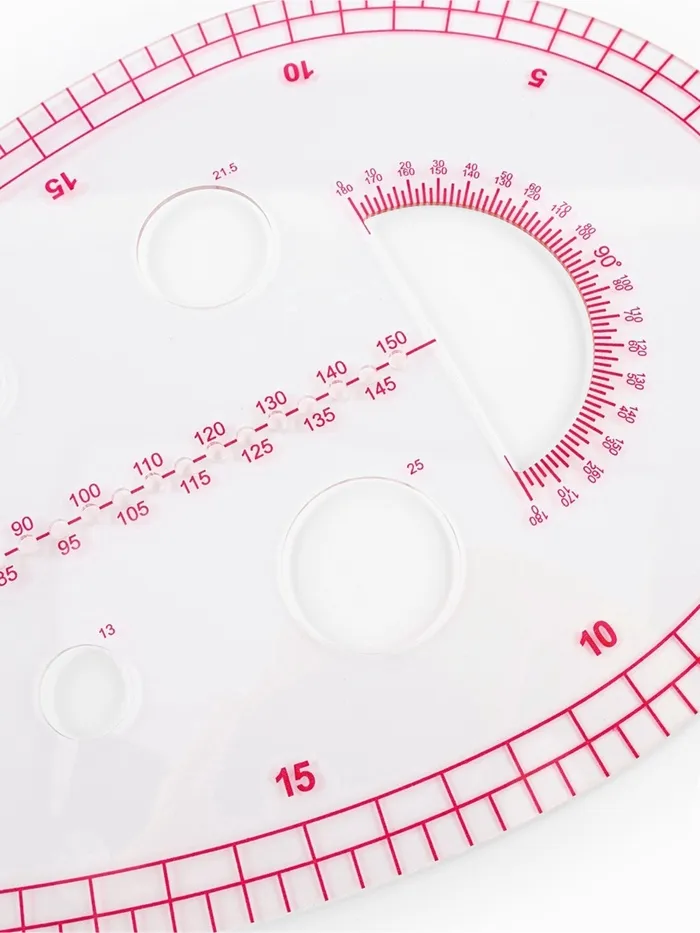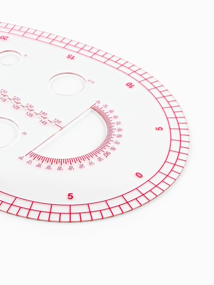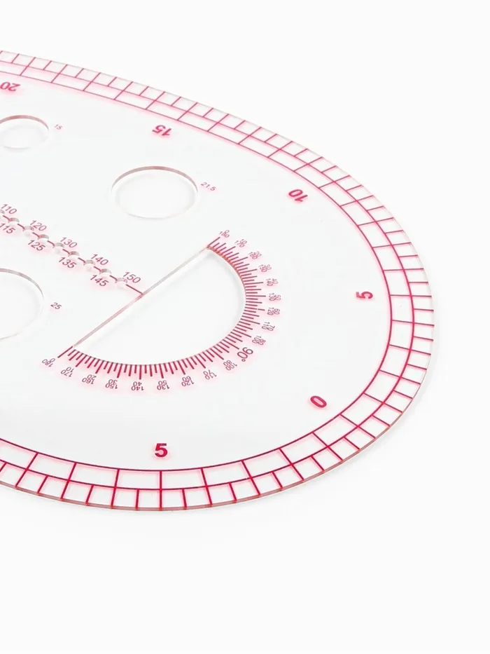 Надёжность и практичность: Лекало изготовлено из прочного тонкого пластика толщиной 0.5 мм. Не деформируется со временем, не скользит по поверхности и не мешает при использовании карандаша или линейки. Простота очистки и долгий срок службы делают его удобным в ежедневной практике.