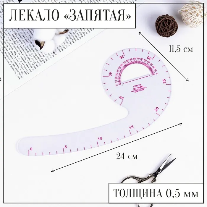 Практичность в использовании: Лекало изготовлено из прочного, но тонкого пластика толщиной 0.5 мм. Не деформируется со временем, не скользит при разметке и совместимо с любыми канцелярскими принадлежностями. Лекало не впитывает загрязнения, легко чистится от портновского мела, мыла или чернил. Простота очистки и долговечность делают его удобным в повседневной работе.