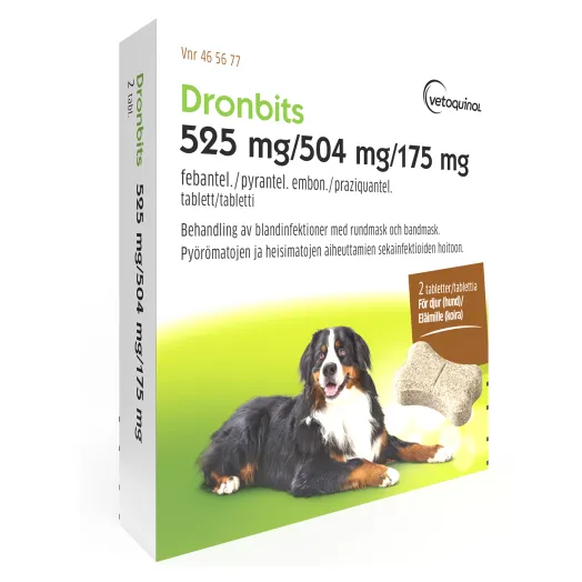 Dronbits 525/504/175 мг для собак - для лечения смешанных инфекций, вызванных круглыми и ленточными червями.