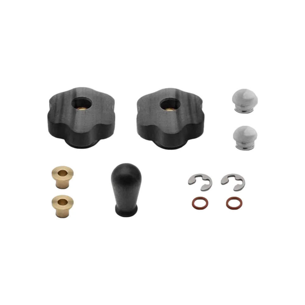 Состав набора: две ручки для парового и горячего водяного сопла, ручка для рычага экстракции, инструкция по установке и необходимые дополнительные детали.