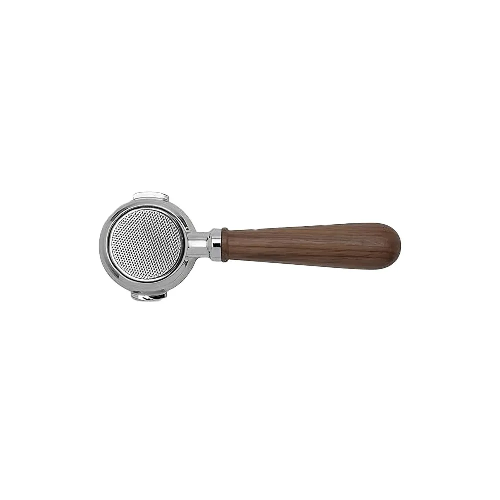 Бездонный фильтродержатель с ручкой из орехового дерева, оснащенный двухпорционным фильтром из нержавеющей стали, разработанным в сотрудничестве с IMS (18–21 г). Подходит для всех кофемашин с группой заваривания LELIT58.