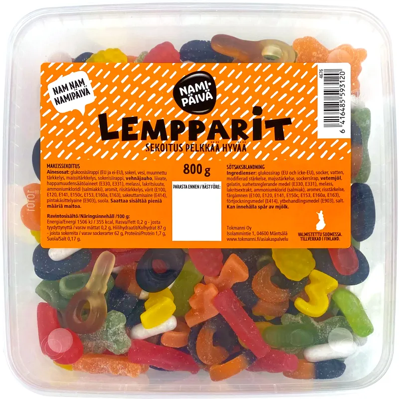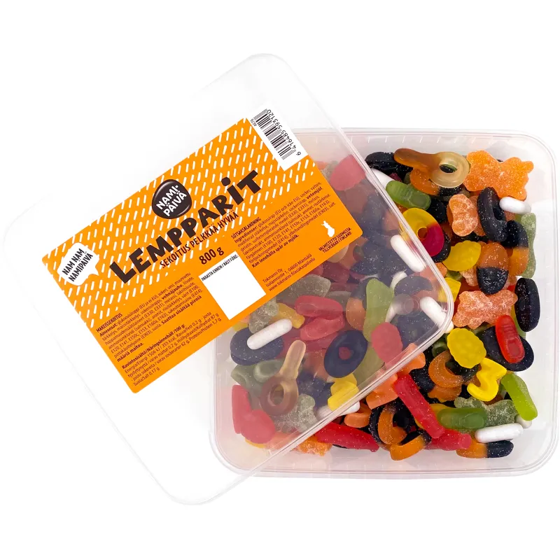 Namipäivä Lempparit – это вкусная и разнообразная смесь конфет, в которой найдется что-то для каждого! В состав входят любимые конфеты от мягких фруктовых до лакрицы. Упаковка весом 800 г идеально подходит для совместного наслаждения с семьей или друзьями. Насладитесь моментами радости и сладости!