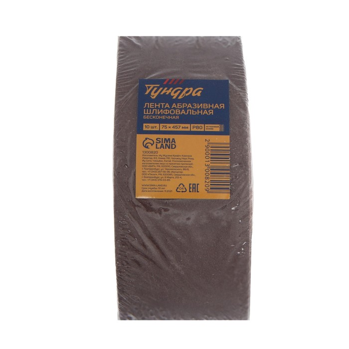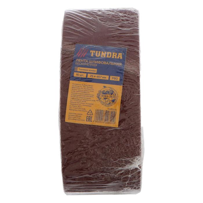 Лента абразивная бесконечная ТУНДРА, на тканевой основе, 75 х 457 мм, Р80, 10 шт. — Характеристики