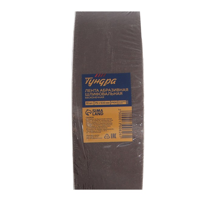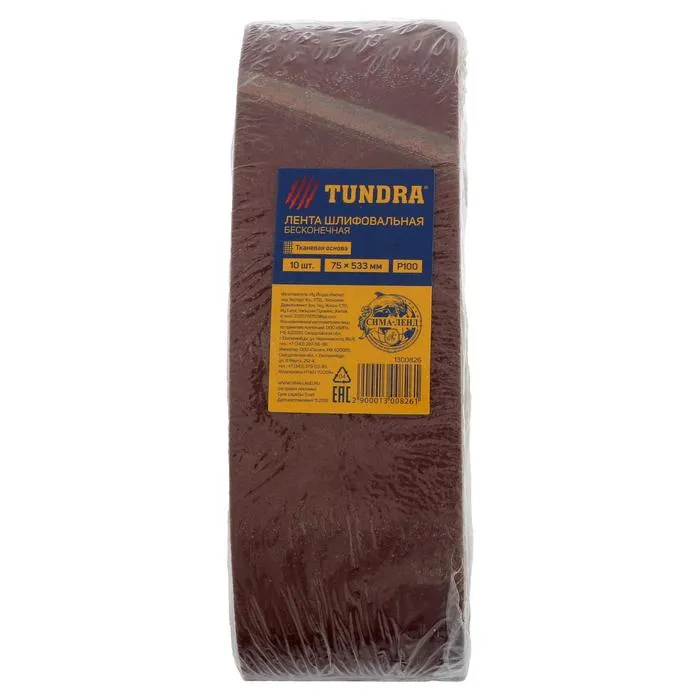 Лента абразивная бесконечная ТУНДРА, на тканевой основе, 75 х 533 мм, Р100, 10 шт. — Характеристики