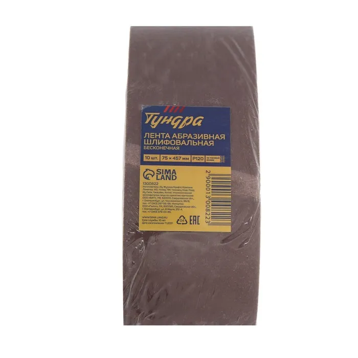 Лента абразивная бесконечная ТУНДРА, на тканевой основе, 75×457 мм, Р120, 10 шт. — Характеристики