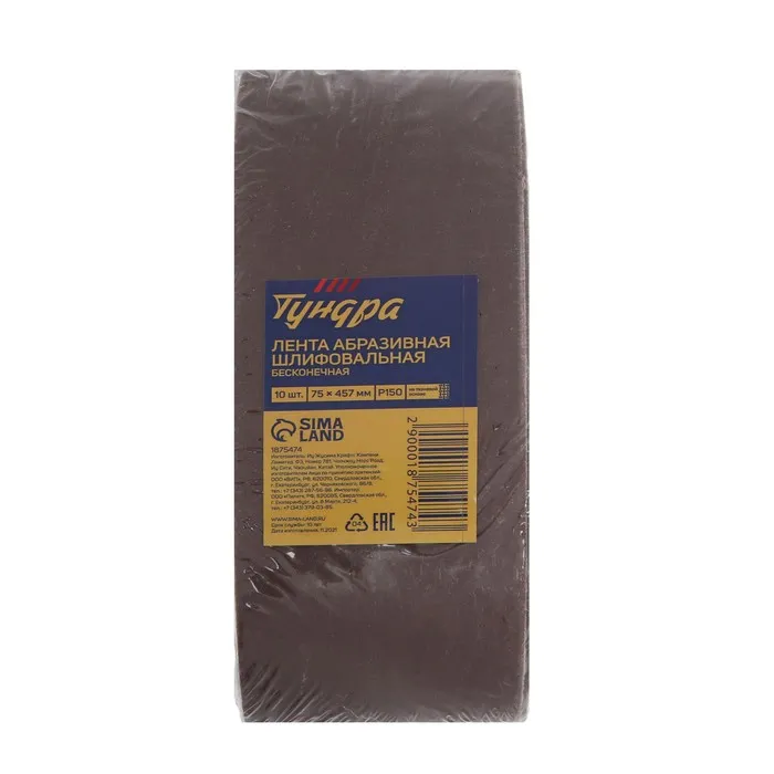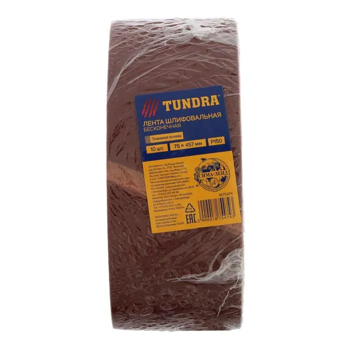 Лента абразивная бесконечная ТУНДРА, на тканевой основе, 75×457 мм, Р150, 10 шт. — Характеристики
