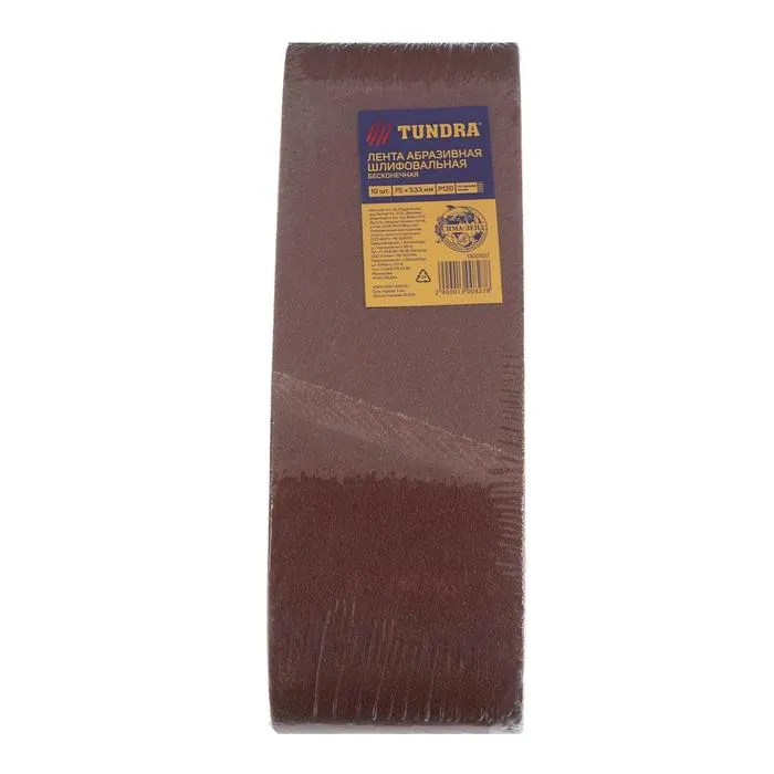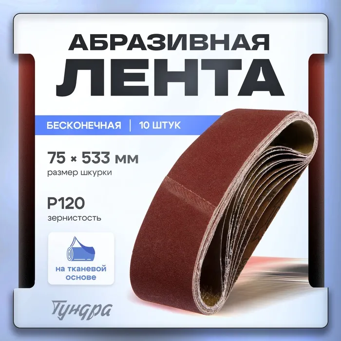 Лента абразивная бесконечная ТУНДРА, на тканевой основе, 75×533 мм, Р120, 10 шт. — Характеристики