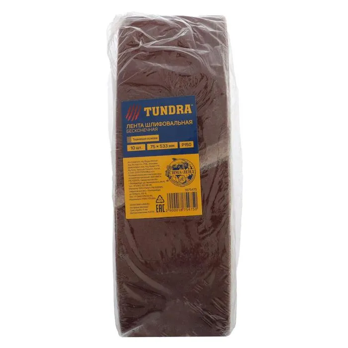 Лента абразивная бесконечная ТУНДРА, на тканевой основе, 75×533 мм, Р150, 10 шт. — Характеристики