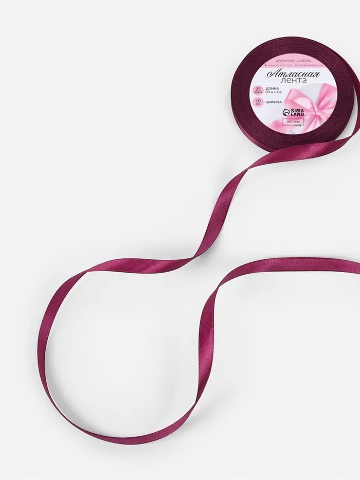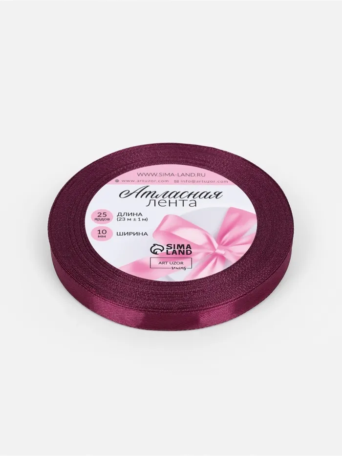 Лента атласная, 10 мм, 23±1 м, баклажановая №252 — Характеристики