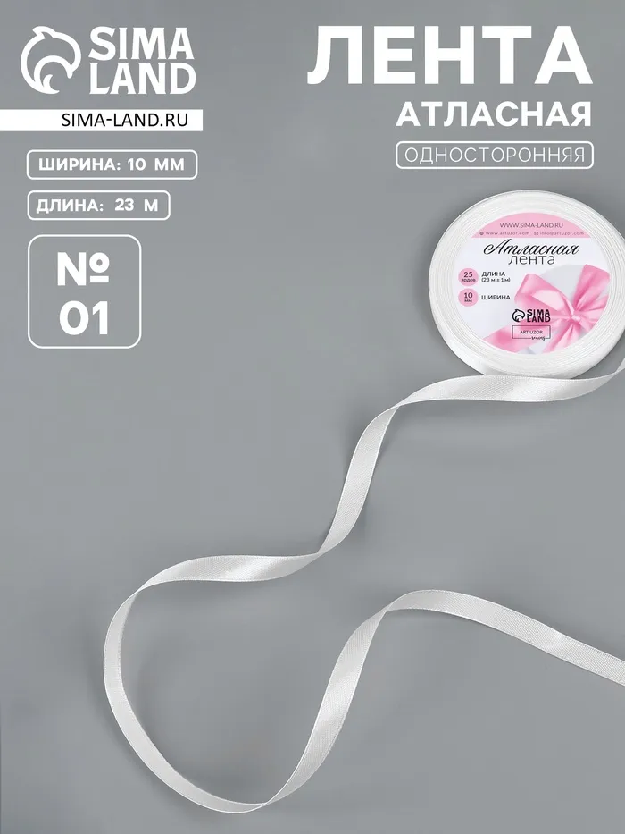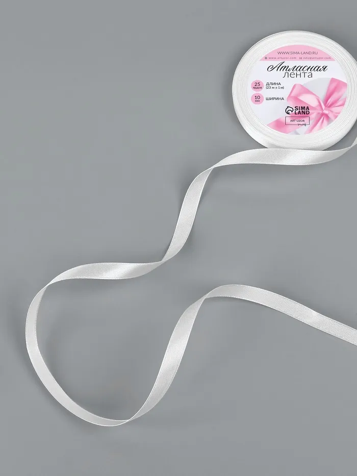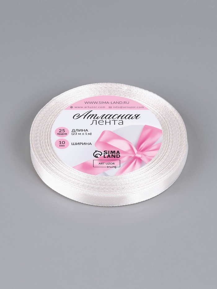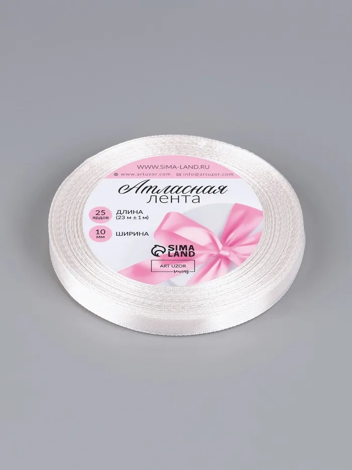 Лента атласная, 10 мм, 23±1 м, белая №01 — Характеристики