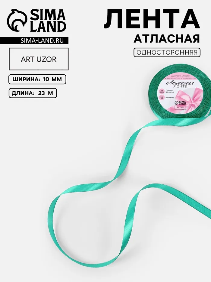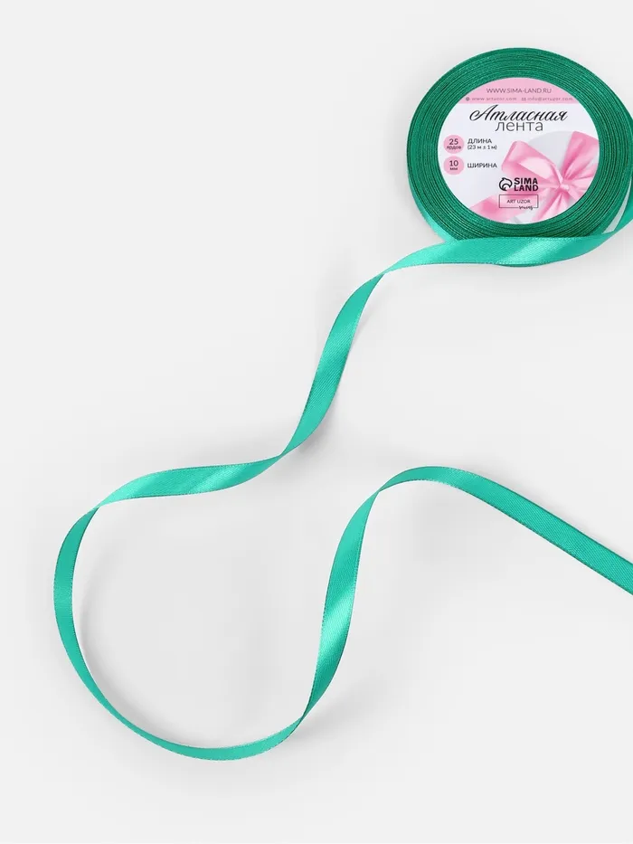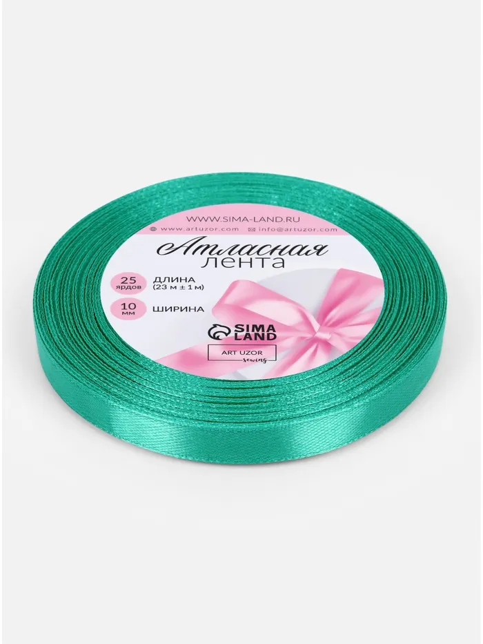 Лента атласная, 10 мм, 23±1 м, бирюзовая №54 — Характеристики
