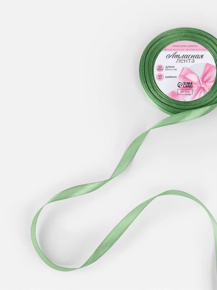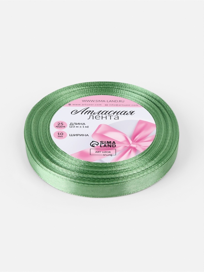 Лента атласная, 10 мм, 23±1 м, фисташковая №65 — Характеристики