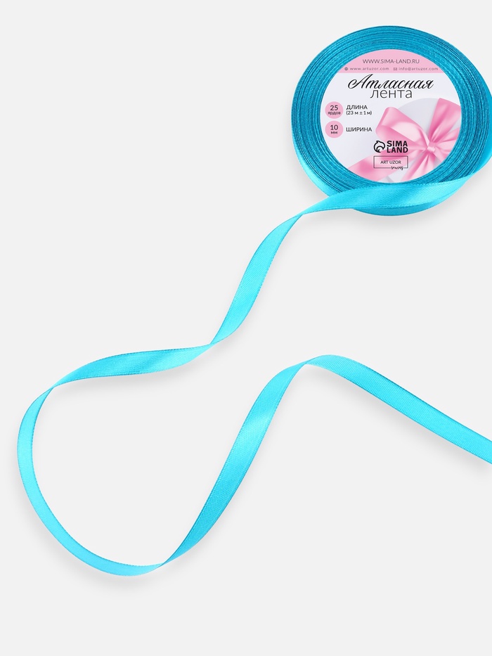 Лента атласная, 10 мм, 23±1 м, голубая №47 — Характеристики
