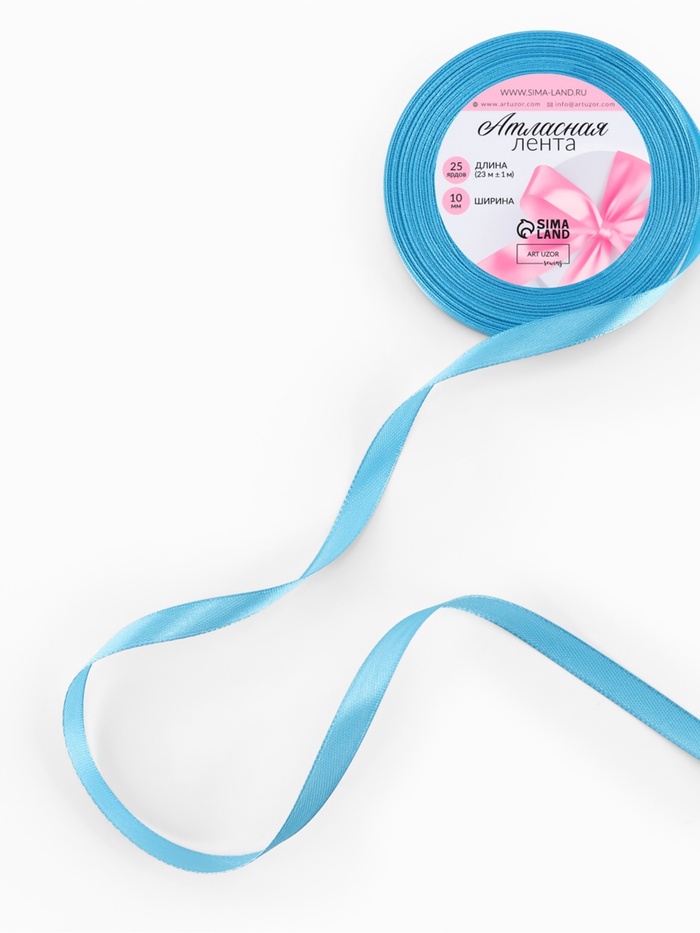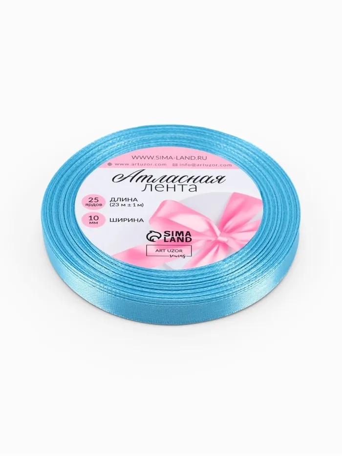 Лента атласная, 10 мм, 23±1 м, ярко-голубая №20 — Характеристики