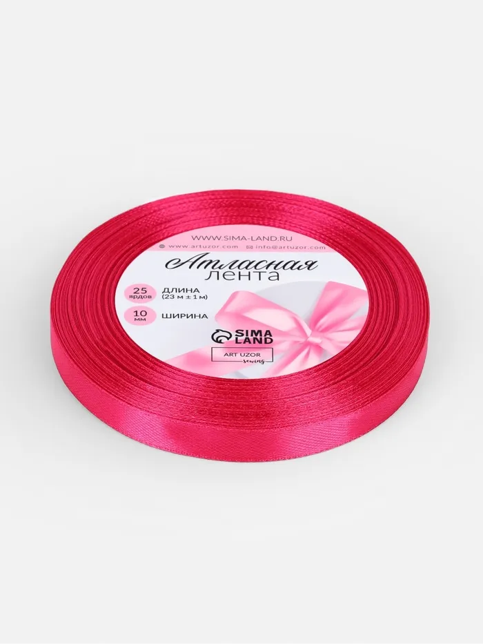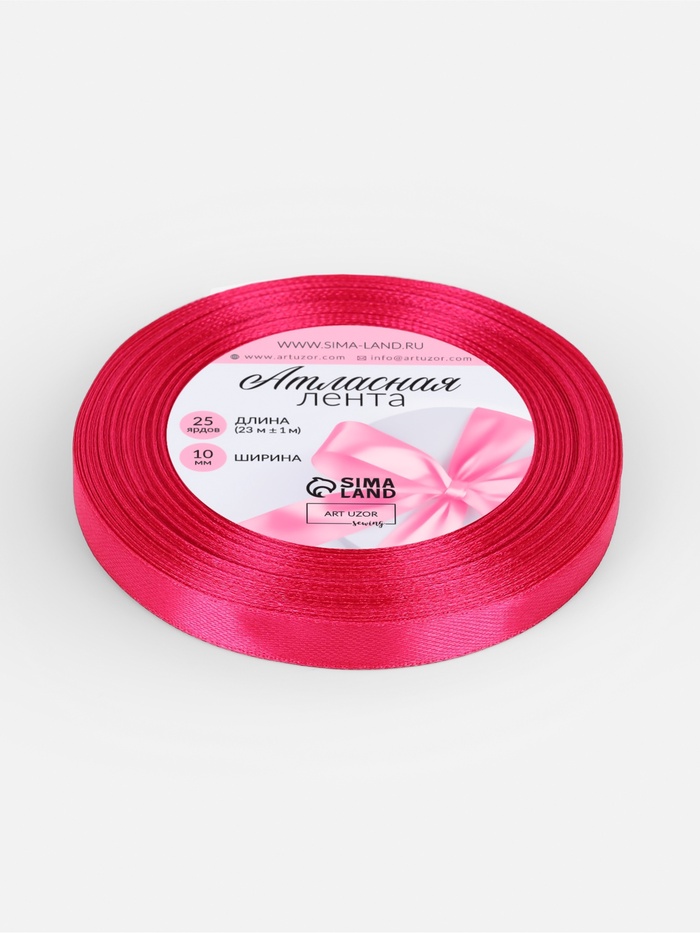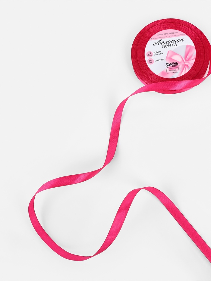 Лента атласная, 10 мм, 23±1 м, ярко-розовая — Характеристики