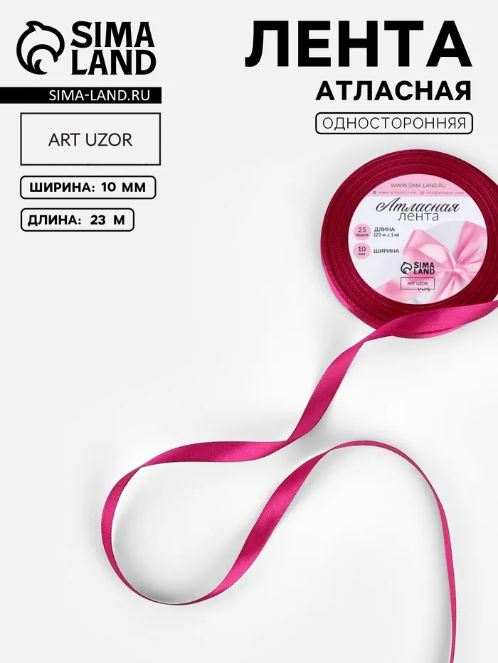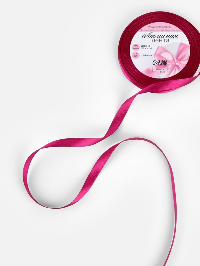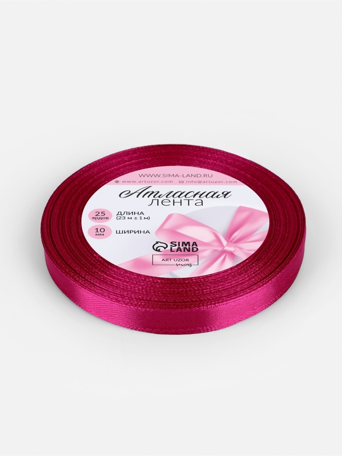 Лента атласная, 10 мм, 23±1 м, ярко-розовая №27 — Характеристики