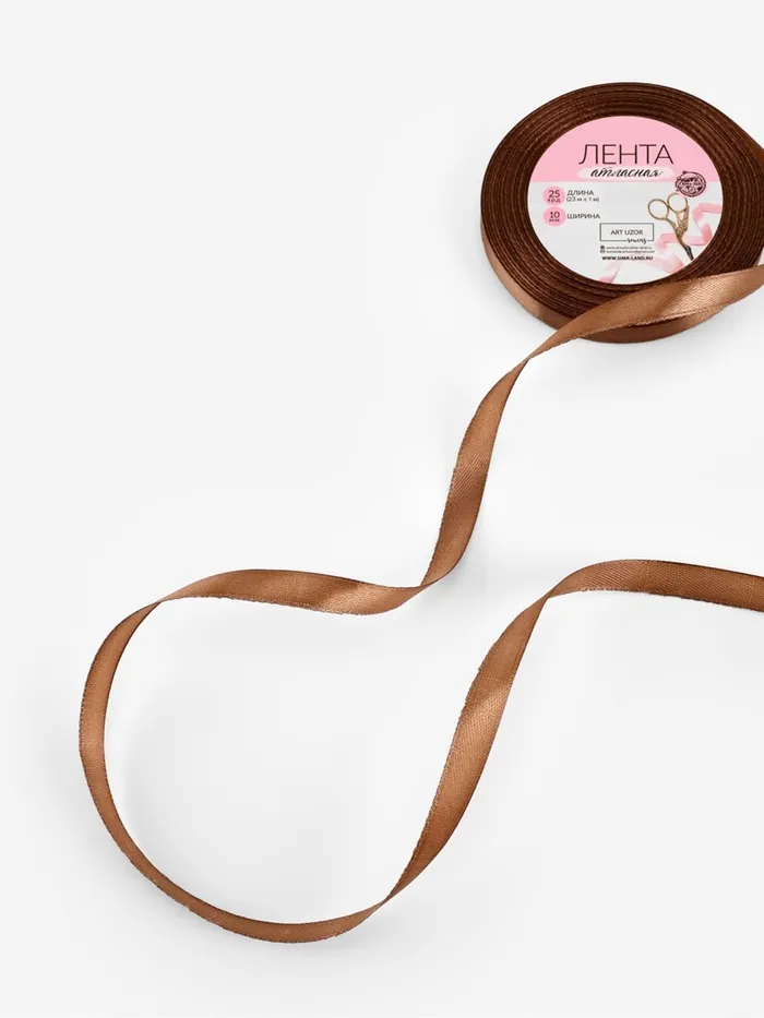 Лента атласная, 10 мм, 23±1 м, коричневая — Характеристики