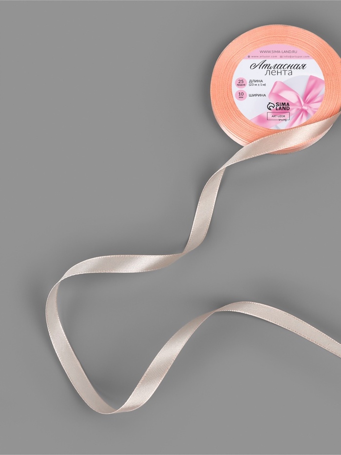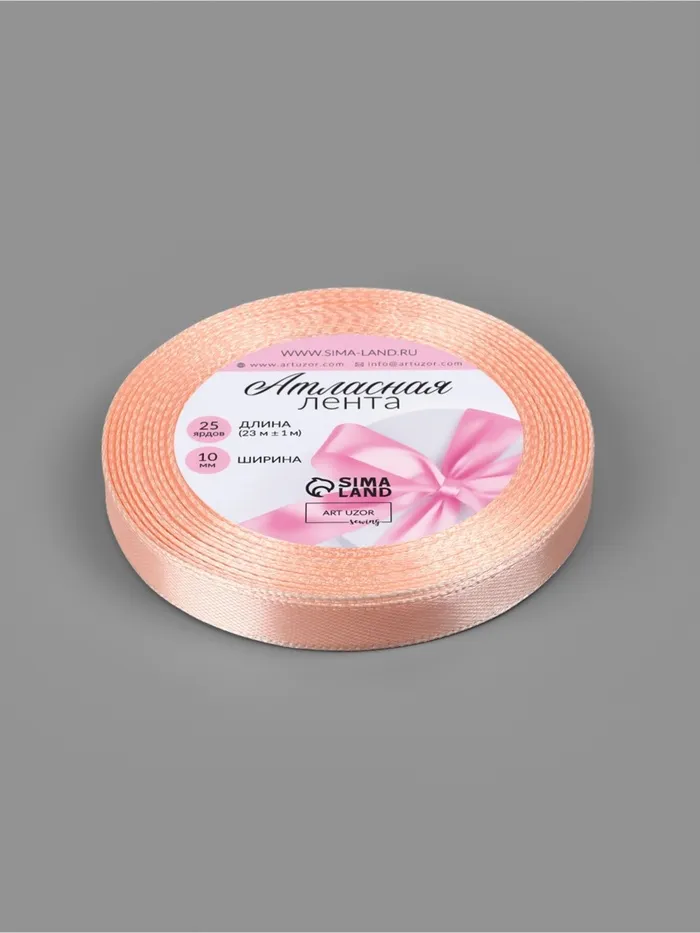 Лента атласная, 10 мм, 23±1 м, нежно-персиковая №07 — Характеристики
