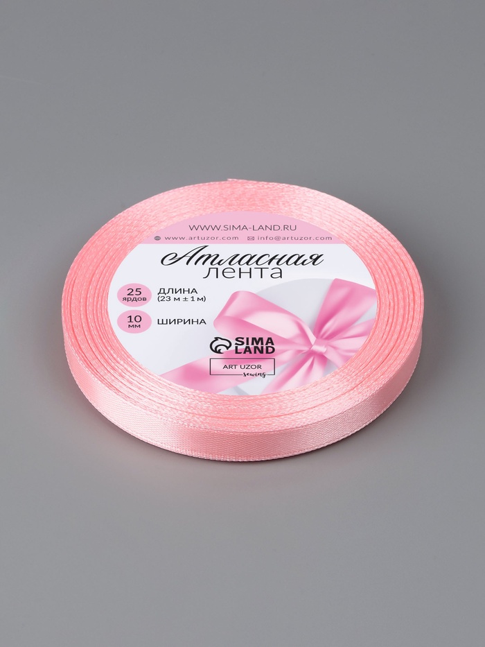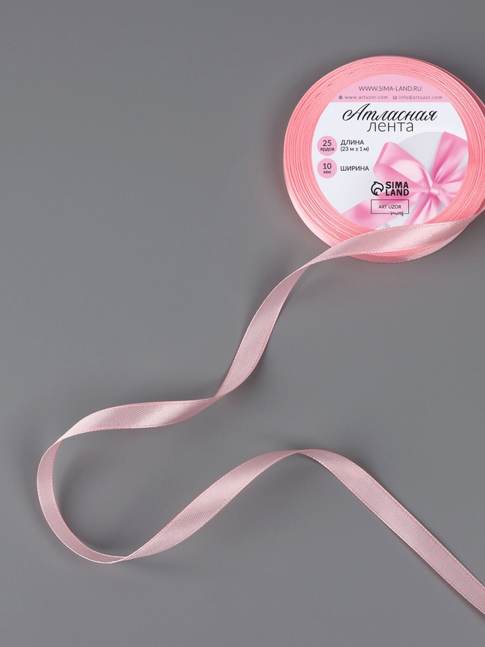 Лента атласная, 10 мм, 23±1 м, розовая №04 — Характеристики