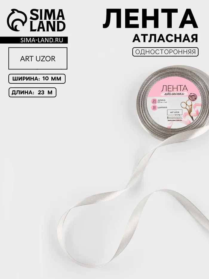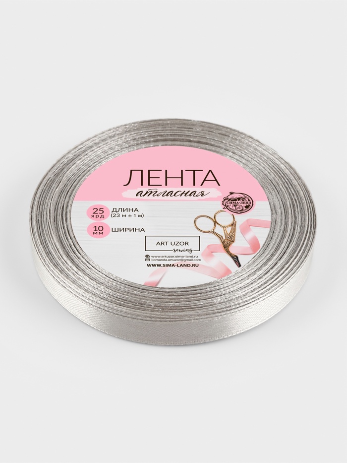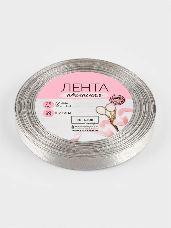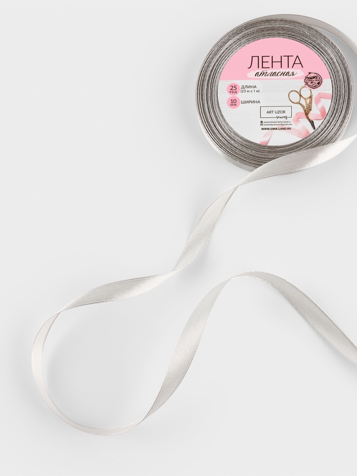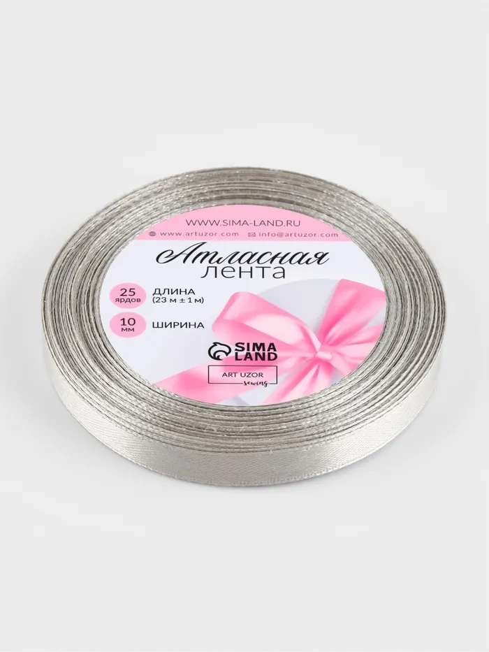 Лента атласная, 10 мм, 23±1 м, светло-серая №179 — Характеристики