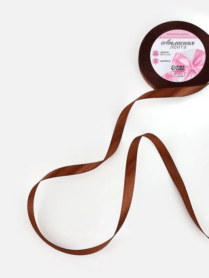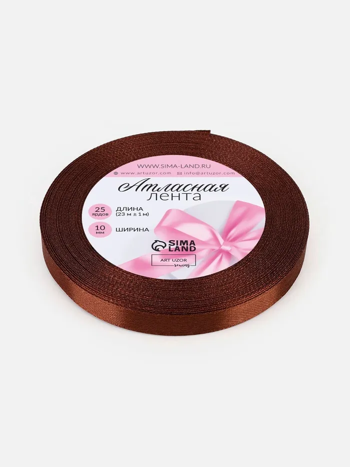 Лента атласная, 10 мм, 23±1 м, тёмно-коричневая №32 — Характеристики