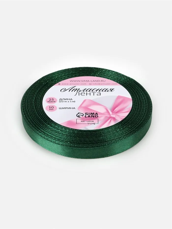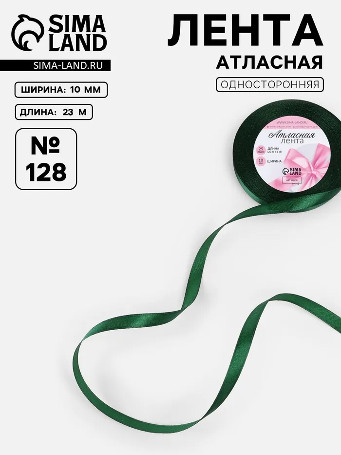 Лента атласная, 10 мм, 23±1 м, тёмно-зелёная №128 — Характеристики