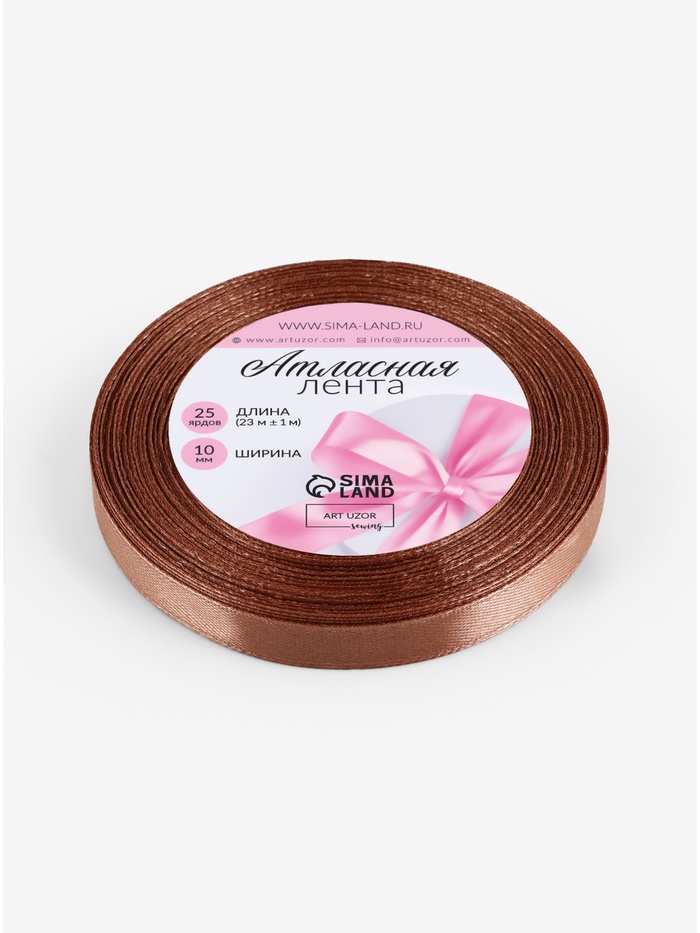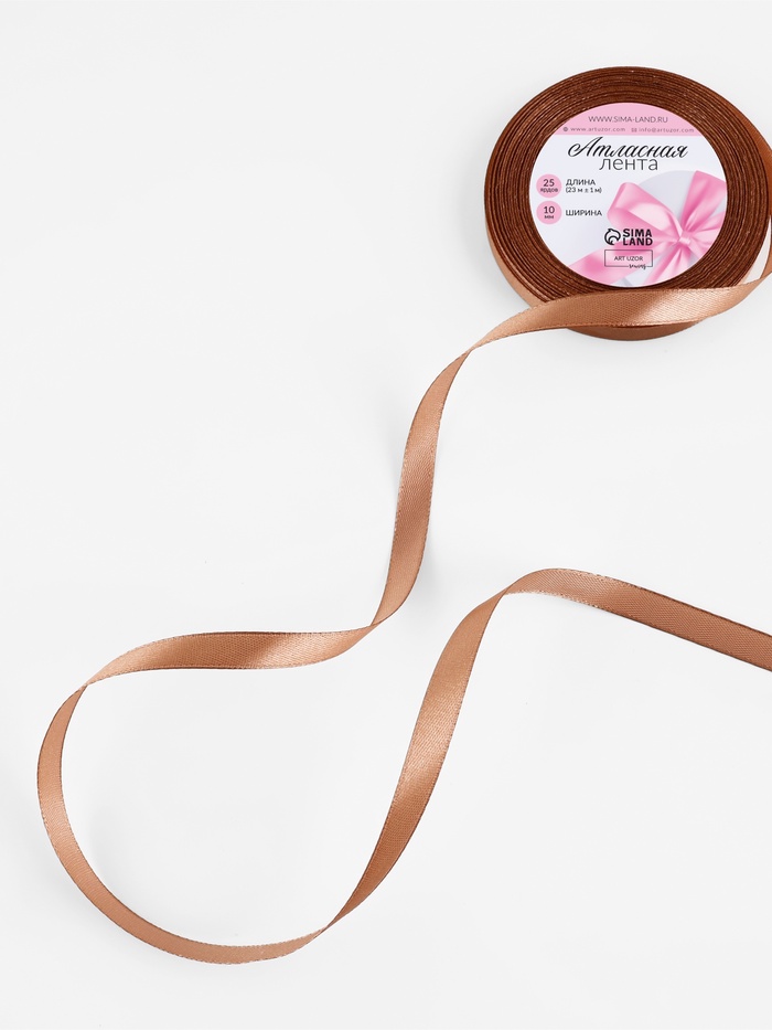 Лента атласная, 10 мм, 23±1 м, цвет бронзовый №117 — Характеристики