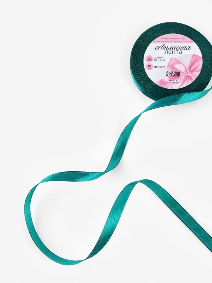 Лента атласная, 10 мм, 23±1 м, зелёная №126 — Характеристики