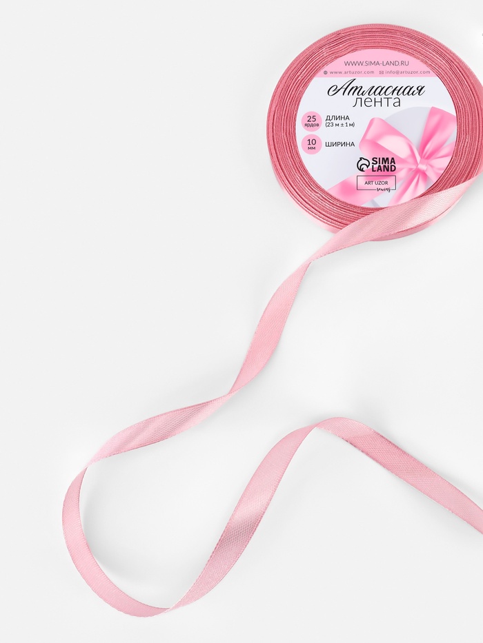 Лента атласная, 10 мм, 23±1 м, жемчужно-розовая — Характеристики