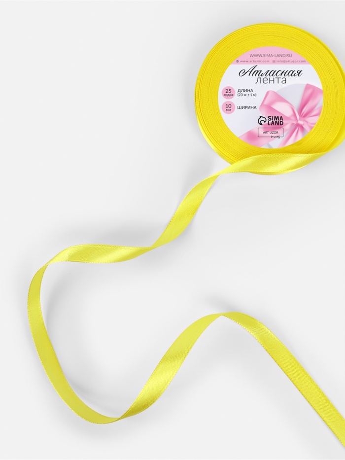 Лента атласная, 10 мм, 23±1 м, жёлтая №15 — Характеристики
