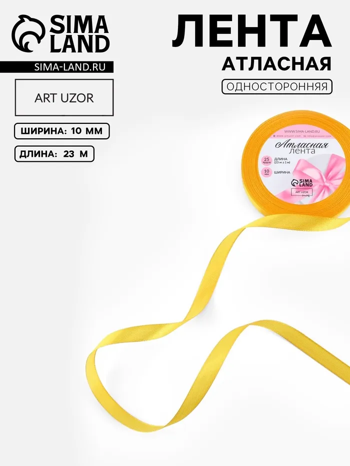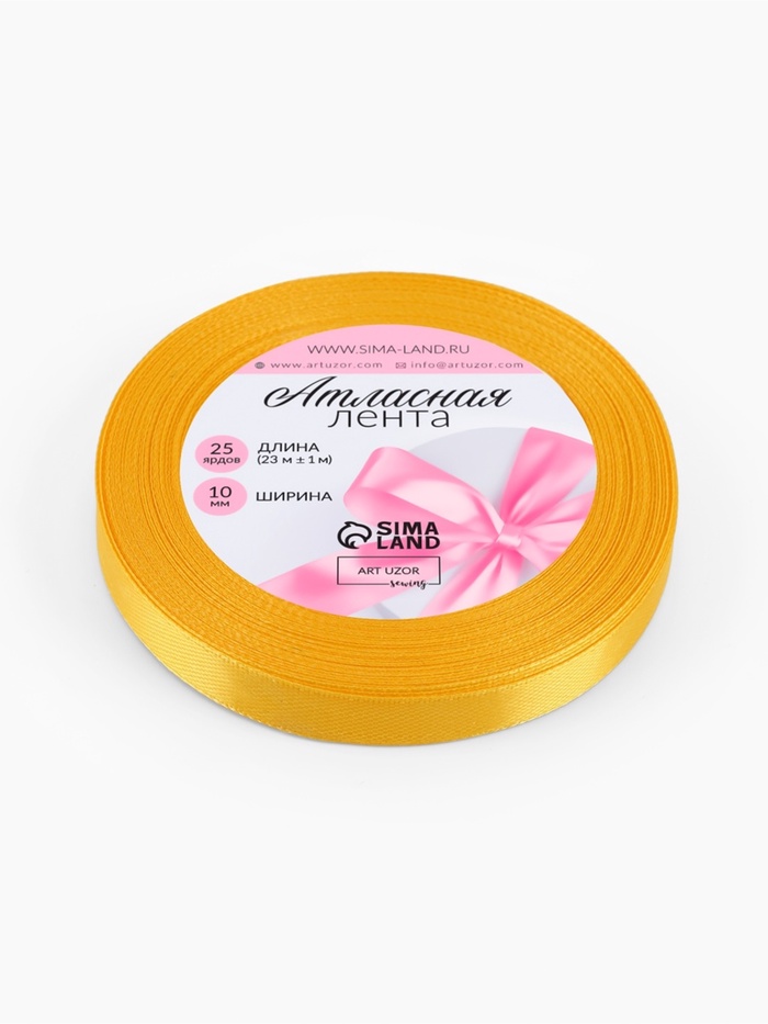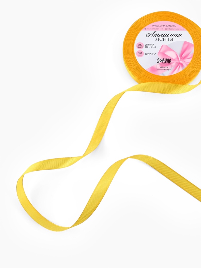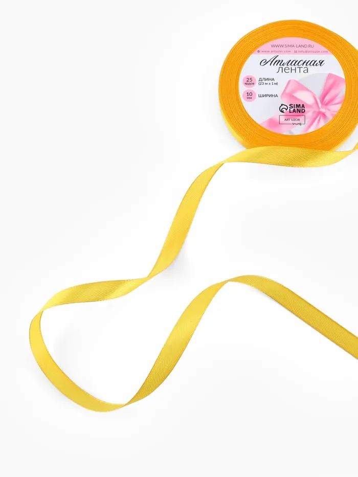 Лента атласная, 10 мм, 23±1 м, жёлтая №16 — Характеристики