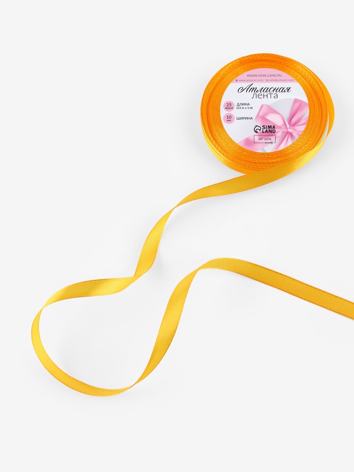Лента атласная, 10 мм, 23±1 м, жёлто-оранжевая №17 — Характеристики