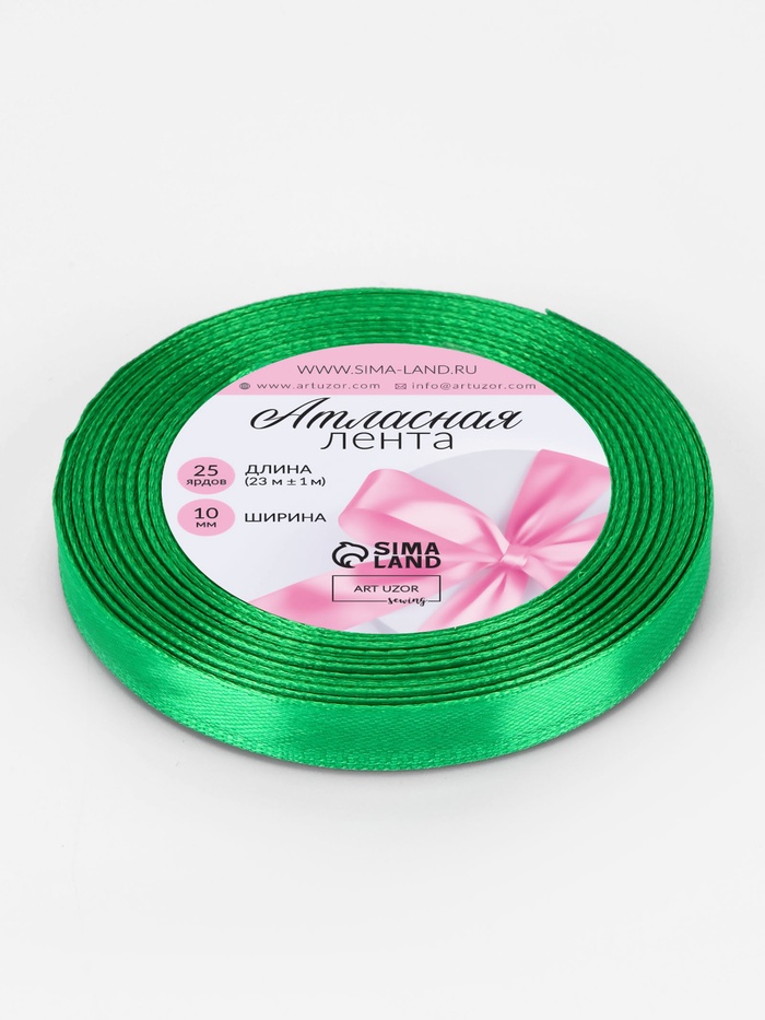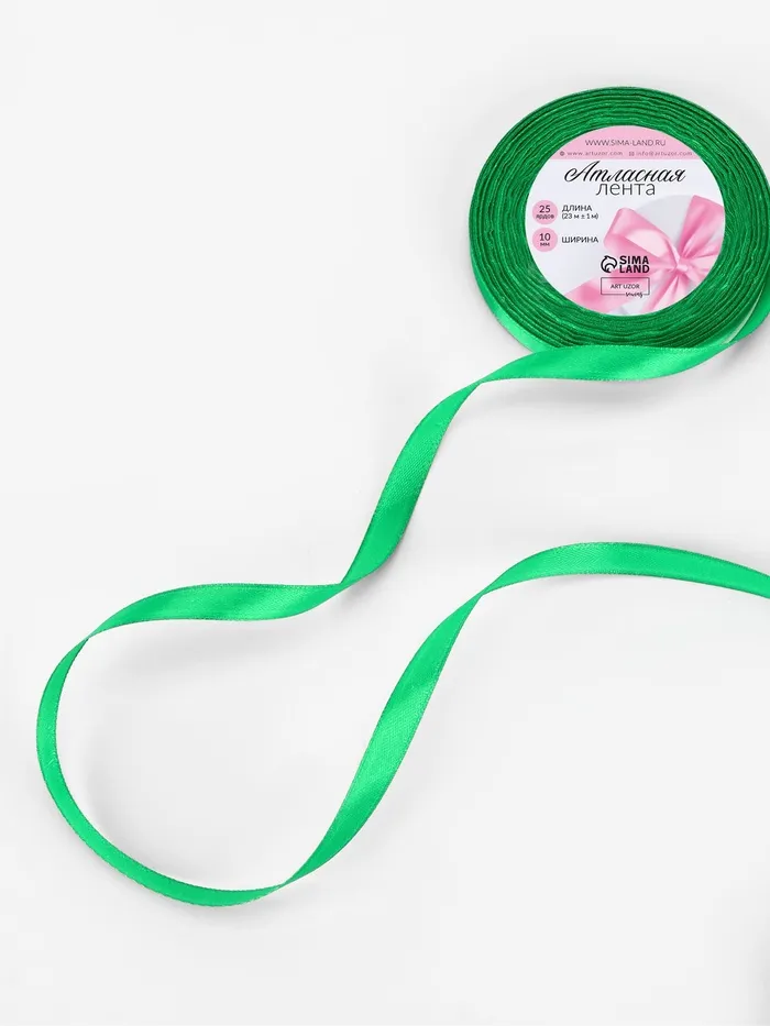 Лента атласная, 10 мм × 23 ± 1 м, цвет зелёный №19 — Характеристики
