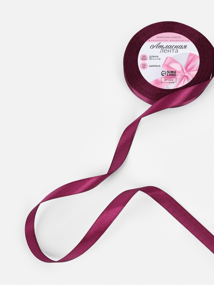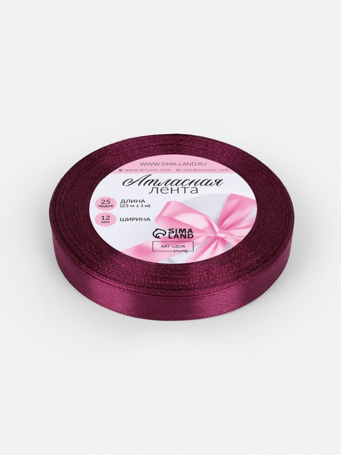 Лента атласная, 12 мм, 23±1 м, баклажановая №252 — Характеристики