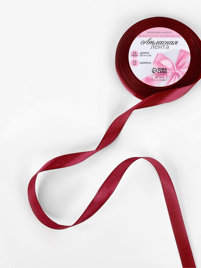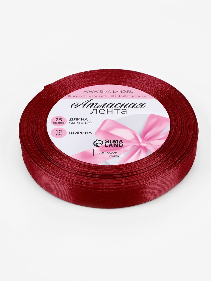 Лента атласная, 12 мм, 23±1 м, бордовая №165 — Характеристики