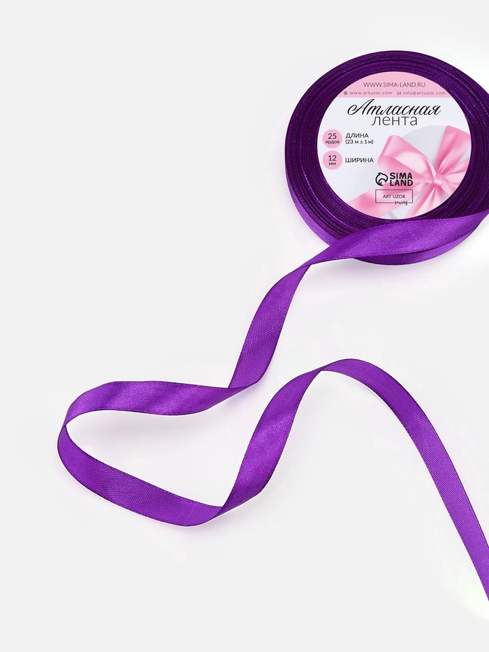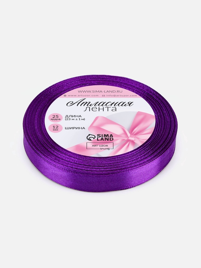 Лента атласная, 12 мм, 23±1 м, фиолетовая №34 — Характеристики
