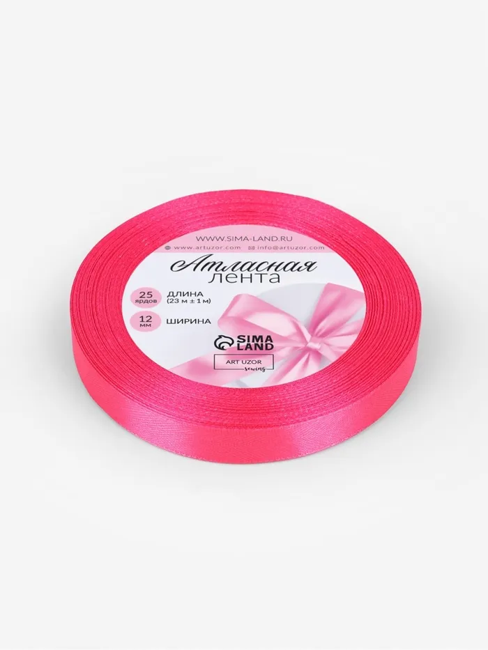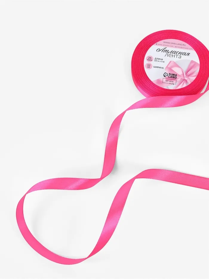 Лента атласная, 12 мм, 23±1 м, ярко-розовая №190 — Характеристики