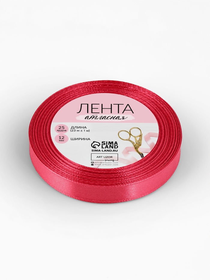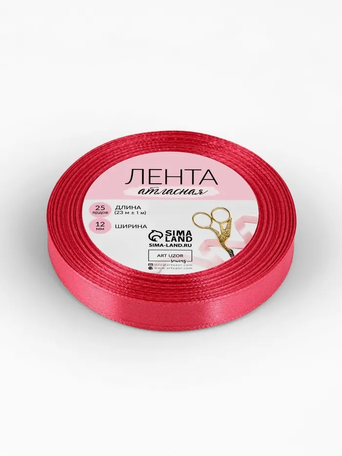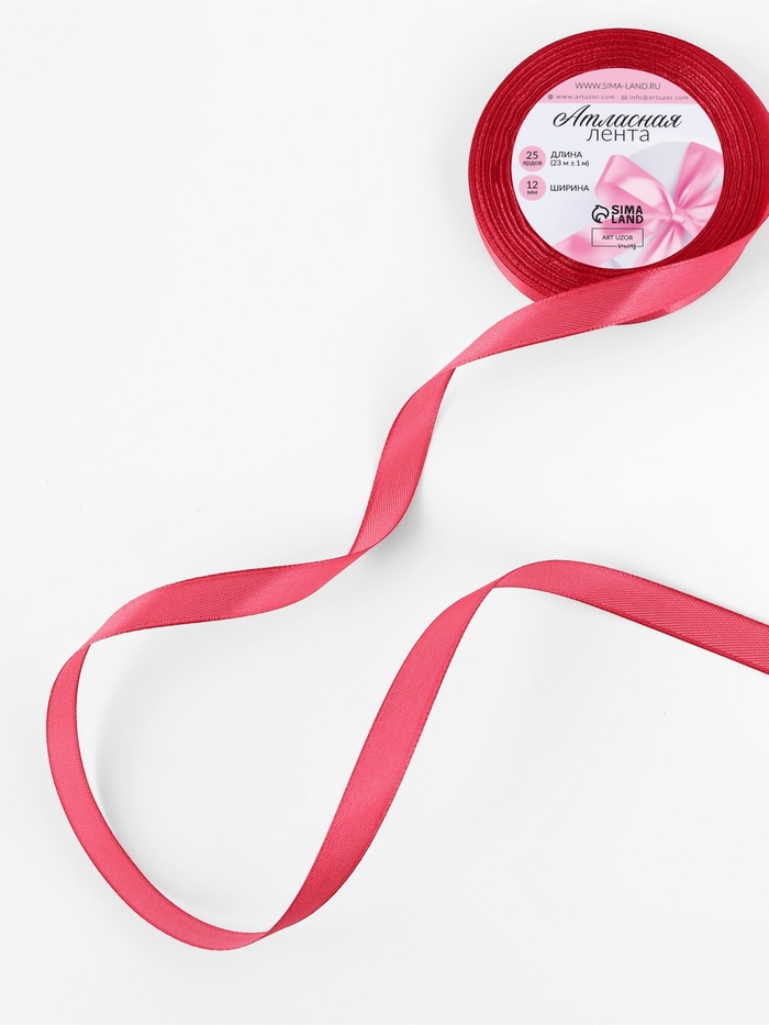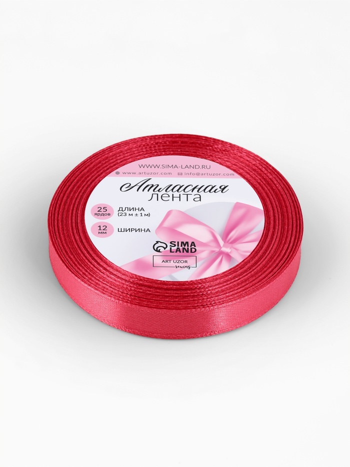 Лента атласная, 12 мм, 23±1 м, малиново-красная — Характеристики