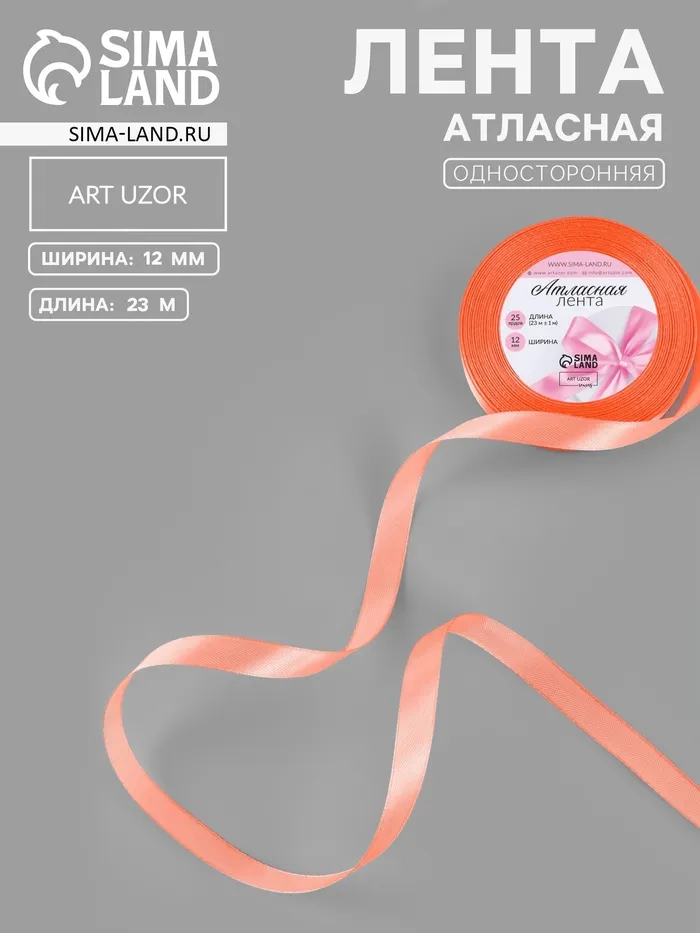 Лента атласная, 12 мм, 23±1 м, оранжевая №22 — Характеристики