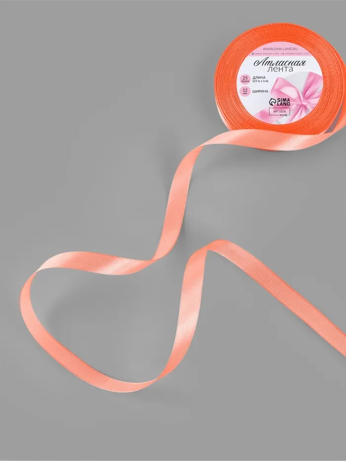 Атласная лента гладкая и приятная на ощупь. Используйте её для отделки изделий, украшения подарков, свадебного оформления, а также в техниках скрапбукинг и канзаши.