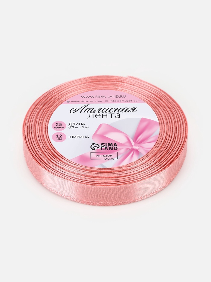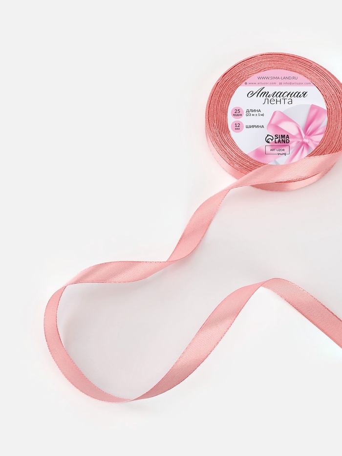 Лента атласная, 12 мм, 23±1 м, пастельно-розовая — Характеристики