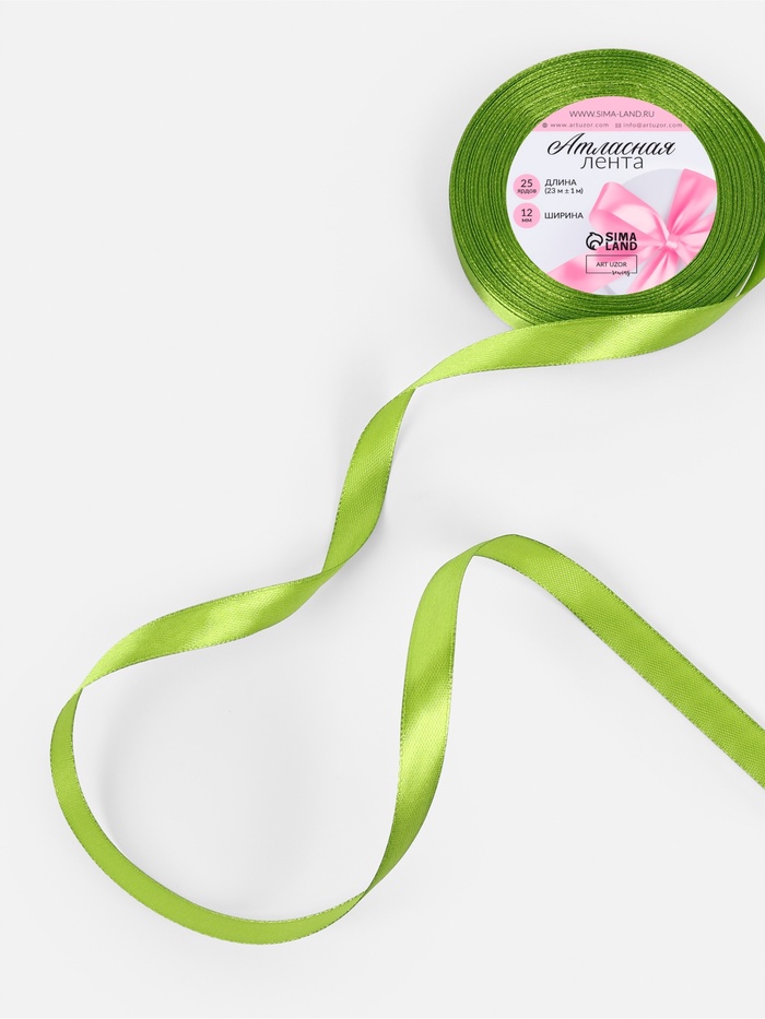 Лента атласная, 12 мм, 23±1 м, светло-зелёная №184 — Характеристики