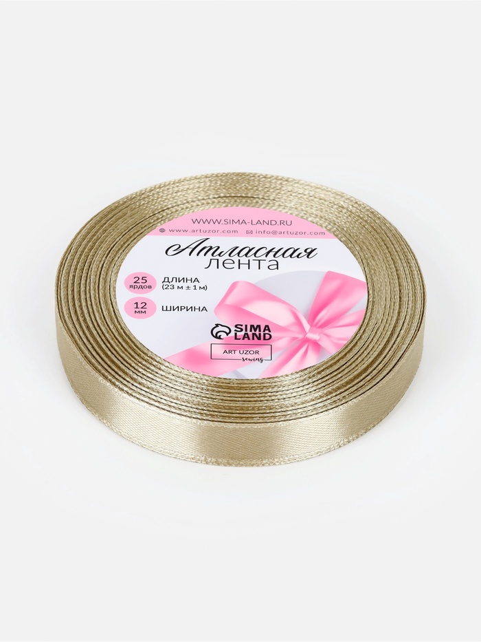 Лента атласная, 12 мм, 23±1 м, тёмно-кремовая — Характеристики